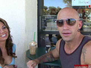 Brunettes Luder mit großen Titten auf der straße abgeschleppt